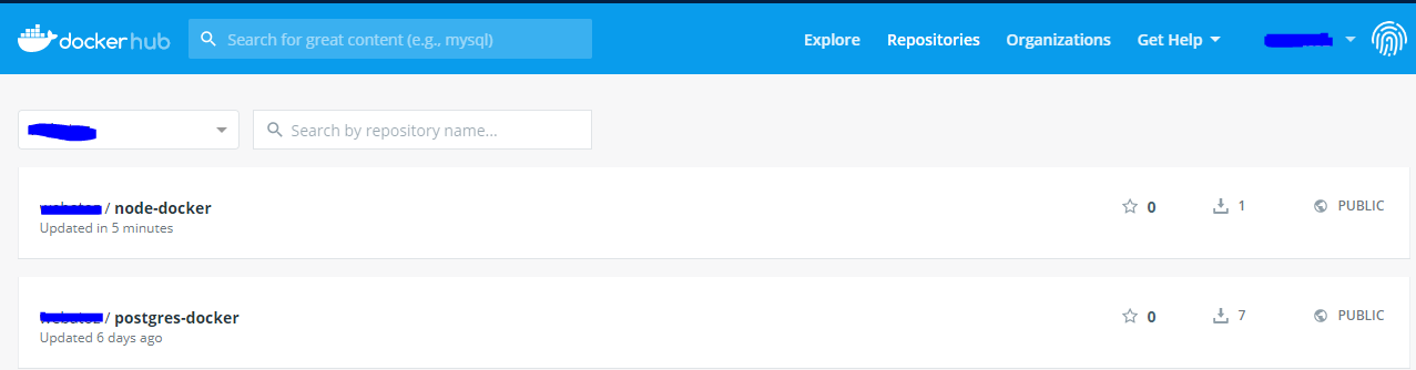 아래와 같이 업로드된 node-docker 이미지를 확인할 수 있다.