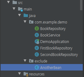 아래와 같이 @SpringBootApplication가 명시된 DemoApplication 클래스의 디렉토리 범위가 아닌 그 외에 디렉토리에 있는 클래스가 있다.