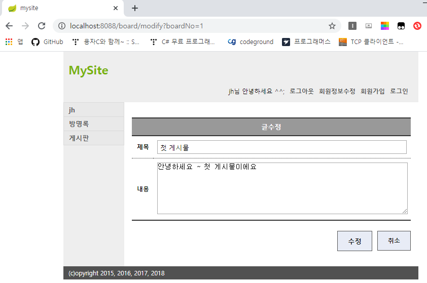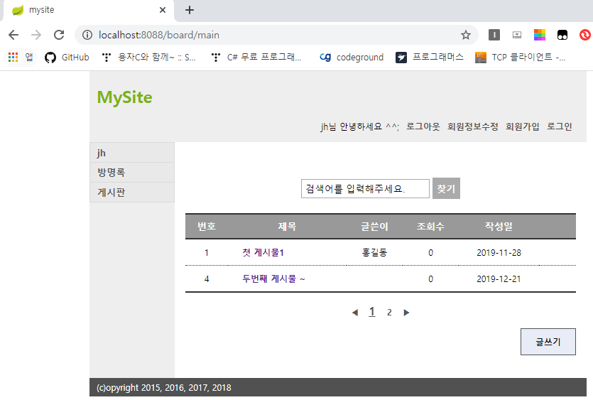 이렇게 게시판 목록, 등록, 수정의 기능이 생기도록 해봤다.
