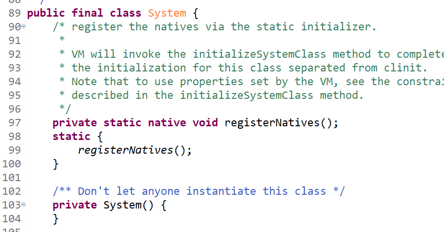 Eclipse에서 위처럼 사용하는 System 클래스의 소스코드를 확인하려고 "F3" 또는 ctrl + 마우스 왼쪽클릭을 한다.
