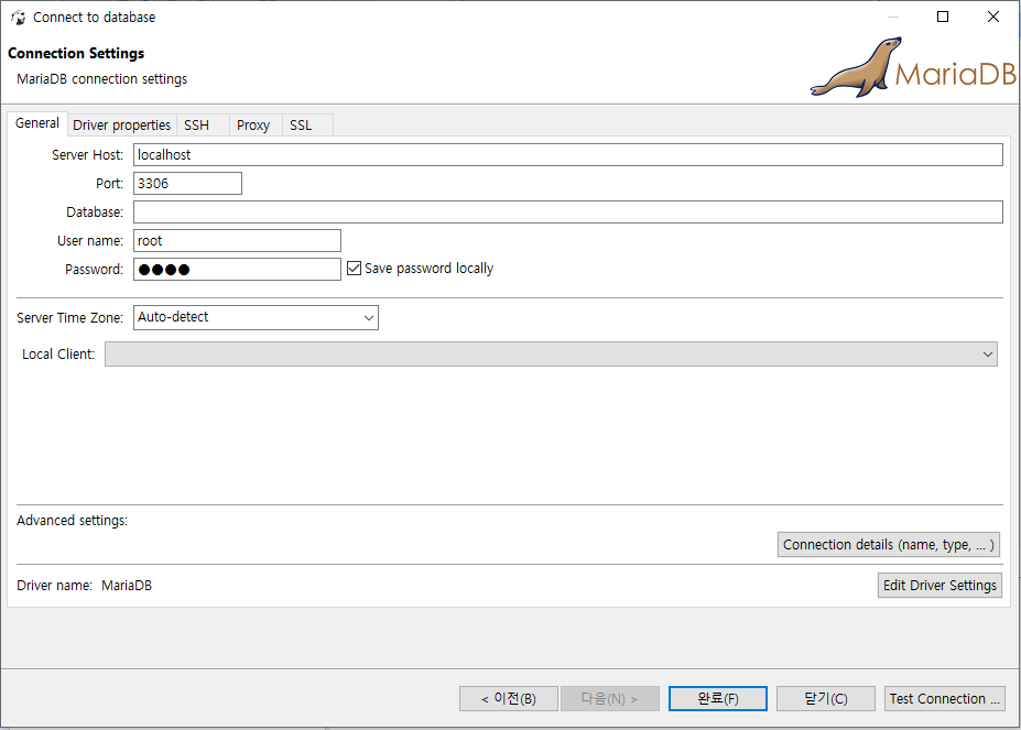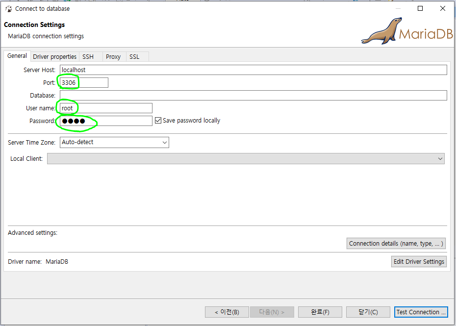 ![]() - 만약 Test Connection에 실패하면 입력한 정보를 다시한번 확인해보도록하자. |