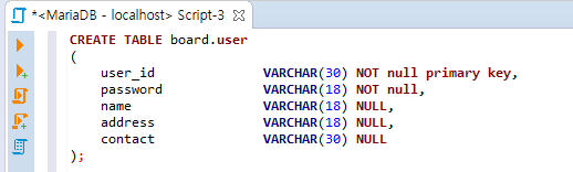 DataBase Client Tool을 이용하여 MariaDB 테이블을 생성해보도록하자.