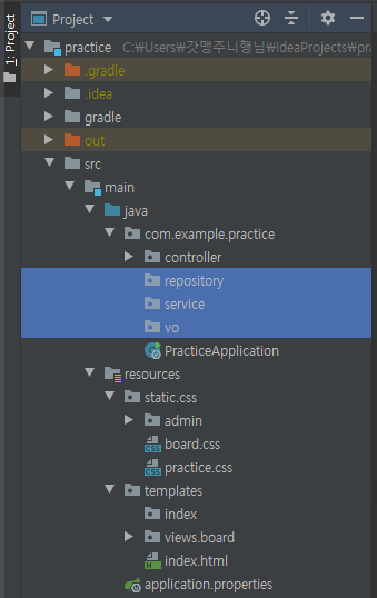 - 게시판을 위한 vo를 생성하기 전에 기본적인 디렉토리 구조를 생성하도록 한다.