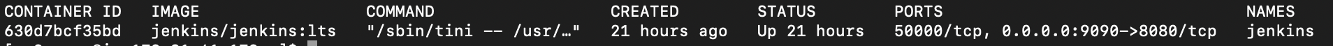 docker run -d -p 9090:8080 -v /jenkins:/var/jenkins_home --name jenkins -u root jenkins/jenkins:lts