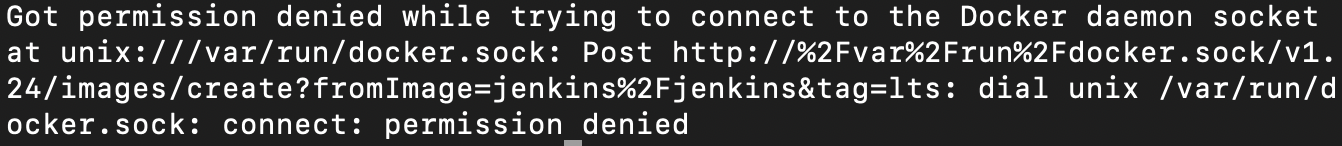 * 만약 root user 권한이 아닌 현재 유저의 권한으로 docker 명령어를 사용하려면, 해당 user가 docker를 이용할 수 있도록 설정하도록하자. root가 아닌 user로 docker 명령어를 실행하게 될 경우 아래와 같은 에러문구가 나올것이다.