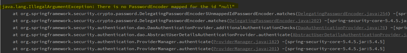 Spring Security를 이용해서 회원가입을 하고 로그인을 하려고보니 아래와 같은 에러가 발생했다.